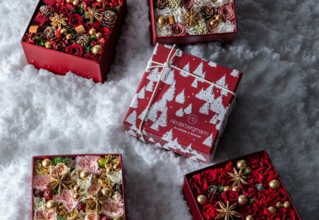 Celebrating the 25th anniversary of the iconic Flower Box, this year’s design features a deep red hue adorned with flocked silhouettes of trees inspired by the stillness of Nordic forests. To mark this milestone, 25 snow motifs shaped like flower boxes gently fall across the lid, completing the anniversary year with subtle elegance.