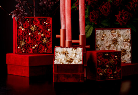 上品な深紅のヴェルベットボックスでクリスマスムードたっぷりに仕上がっています。