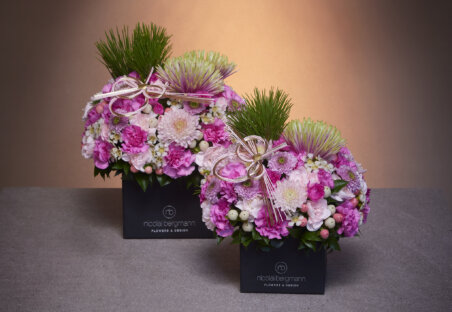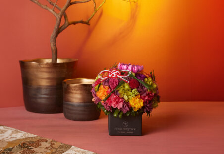 日本では新年に欠かせない松とお飾りをバランスよく組み合わせたデザインや、大輪のマムやアナスタシアをポイントにしたデザイン、ローズやカーネーションに紫陽花など彩り豊かなマルチカラーの花材を組み合わせた躍動感あるデザインなど、ニコライ バーグマンだからこそ表現できる北欧デザインと和の感性が見事に調和された、ユニークなスタイルをお届けいたします。