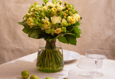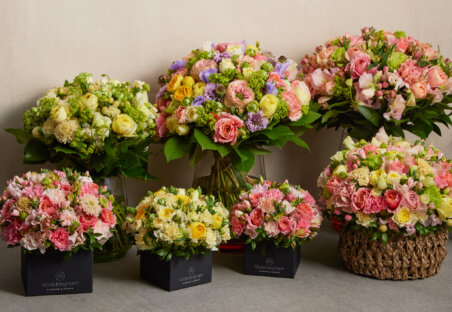 春の代表的な花、スイトピーやスカビオサ、個性的な咲き方のローズやカーネーションなど、ソフトイエローやピンクなど美しい色合いの花々でフラワーキューブアレンジメントやフラワーブーケを作り上げました。大切な方へのギフトやご自宅のインテリアにぴったりなフラワーアイテムをご用意しています。