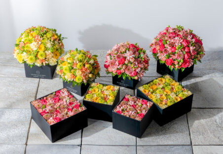 定番のフラワーボックスやフラワーキューブに加え、ブーケやアレンジメントなど、シーンや空間に合わせて選べるラインナップとなっています。